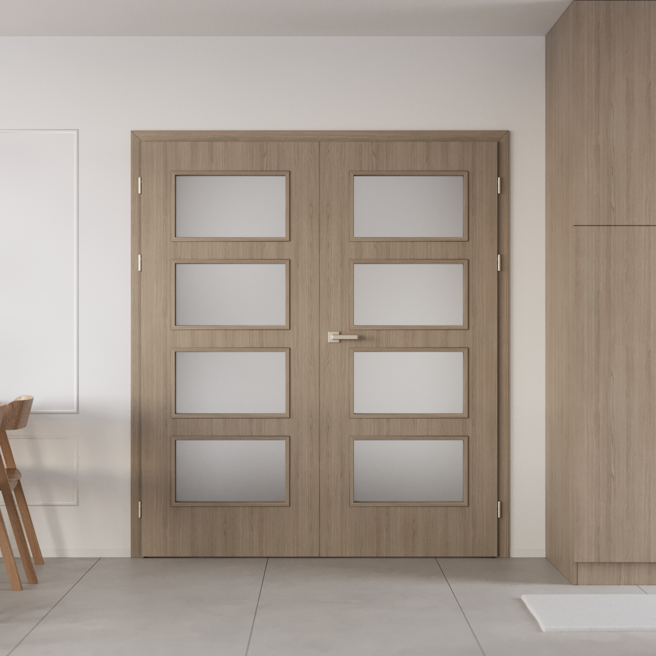 - Exklusive Japandi-Dekore: Der zarte Grauton Taupe Natur schafft eine ruhige, erdige Basis in matter Ausführung, die sich leicht mit Holz, Stein und Glas kombinieren lässt. CPL Türdekore im Japandi-Stil